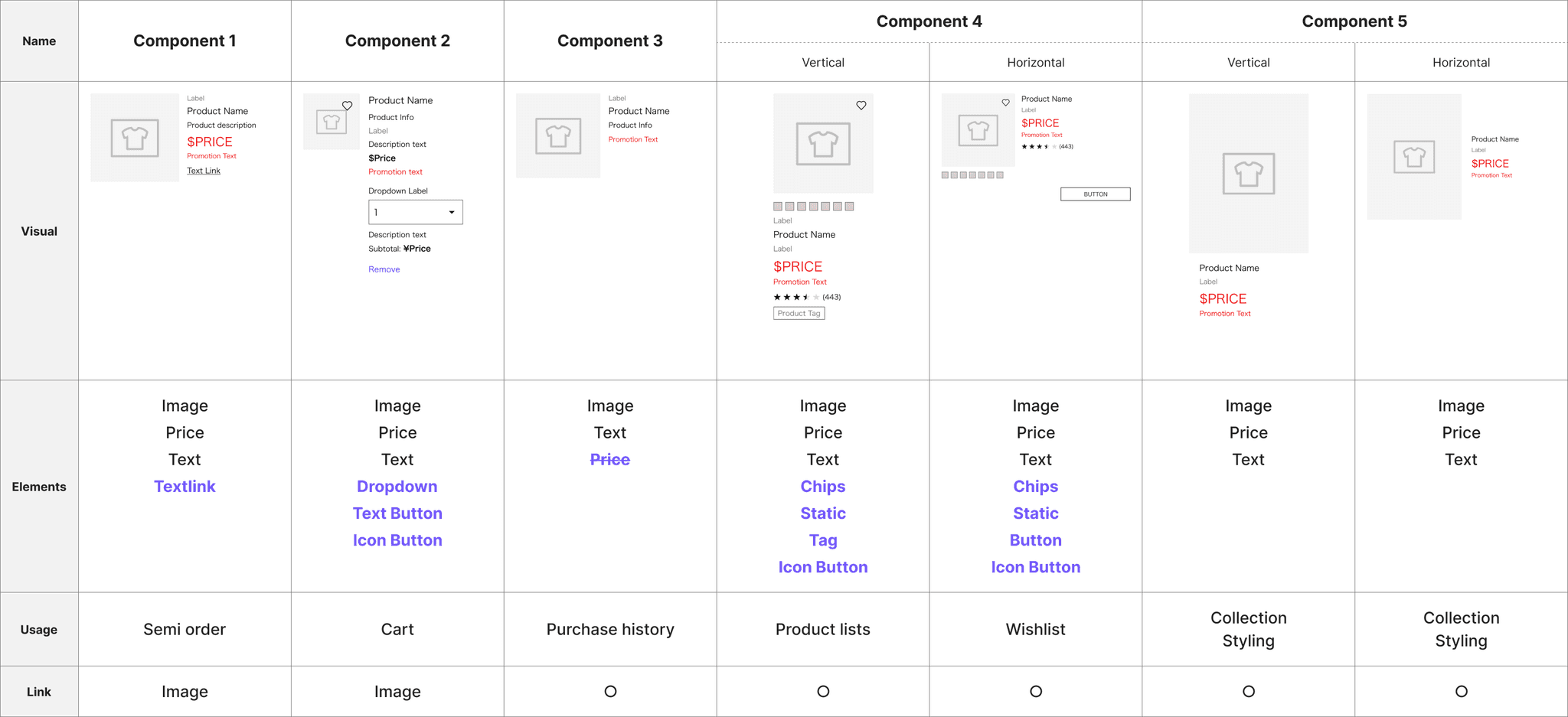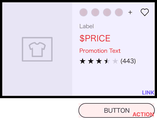 これらの挙動を1つのComponentで統一的に対応しようとすると、構造が複雑化し運用・開発両面でのリスクが増すため、「Product Component自体には挙動を持たせない」という方針を採用しました。なお、画像だけLinkするパターンはComponentに「Img link」のプロパティをつけます。