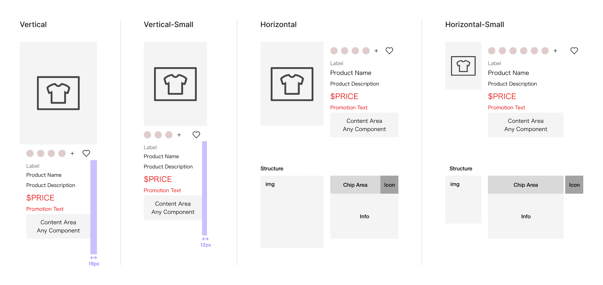 過去の高速な機能開発により、商品関連のComponentは多数存在しており、整合性のない状態が長く続いていました。今回のリニューアルを機に、画像比率の統一と合わせて構造も見直すべきだと判断し、PM・エンジニアと調整の上、商品関連Componentの統合に着手しました。
