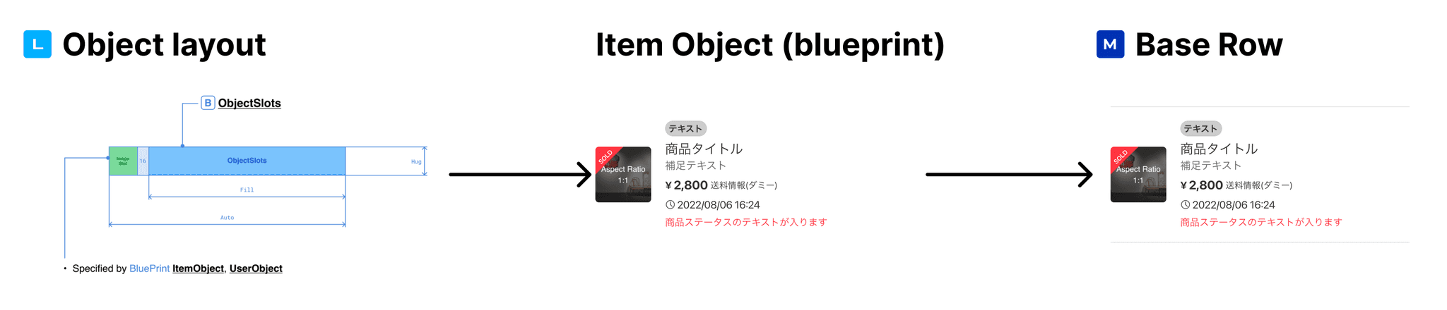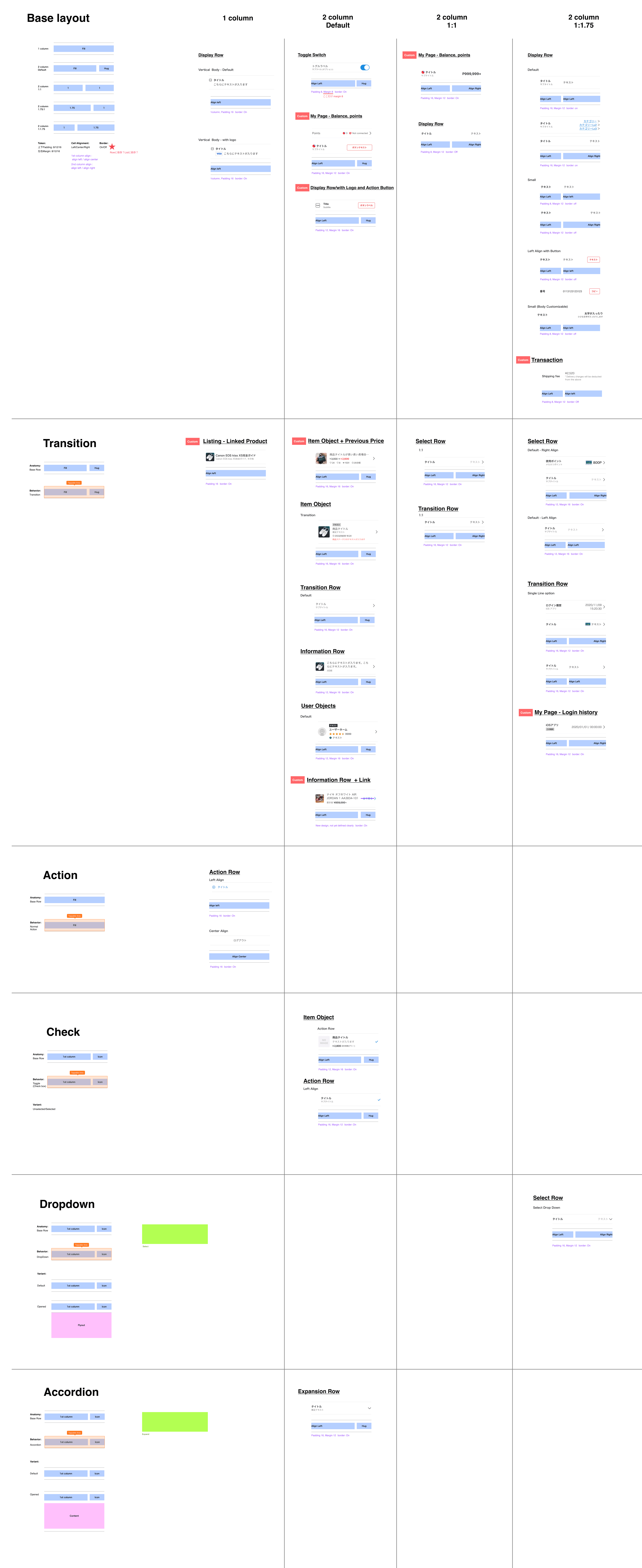 さらに、「OOXX Row」と呼ばれる、ビジュアルは似ているものの挙動が異なるComponentも多数存在しており、「Item Object」とレイアウトや挙動が重複するようなケースも見られました。