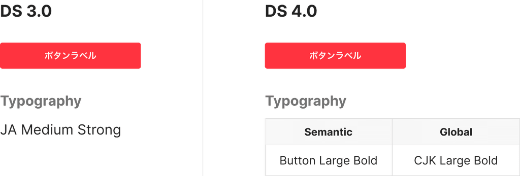 4.0 では、この問題を解決するために、従来のサイズ基準の定義をGlobal Tokenとして踏襲しつつ、用途に応じたSemanticレイヤーを新たに定義しました。
