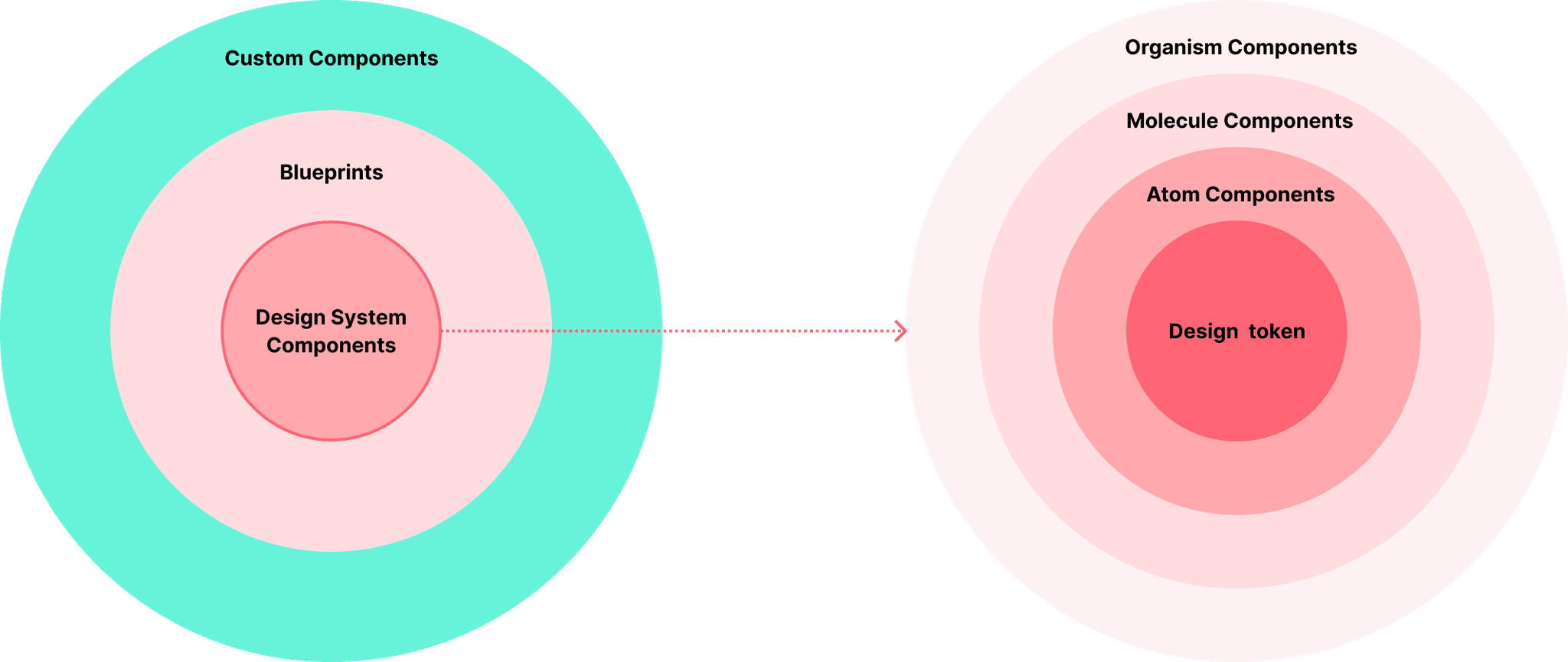 なので、Design SystemのComponentに該当しないレイヤーを独自に設計しました。具体的には、Blueprint と Custom Component という2つの枠を定義しました。